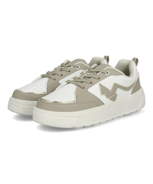 MADFOOT! マッドフット キッズ ボリュームソールコートスニーカー【軽量/幅広3E】厚底 子供靴 250021 ベージュ/ホワイト