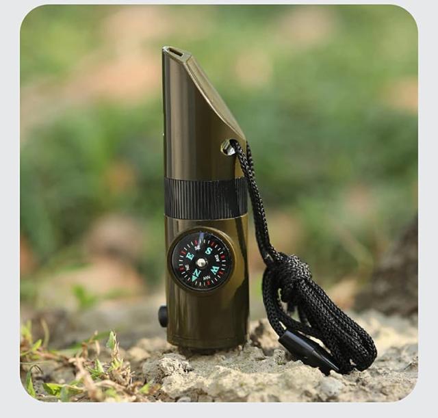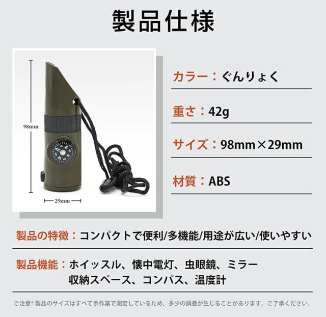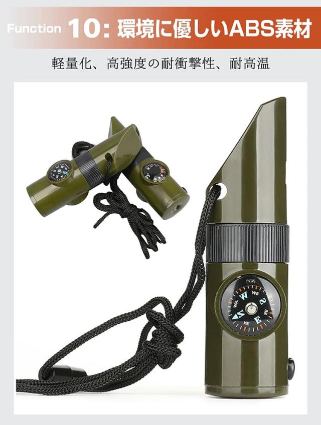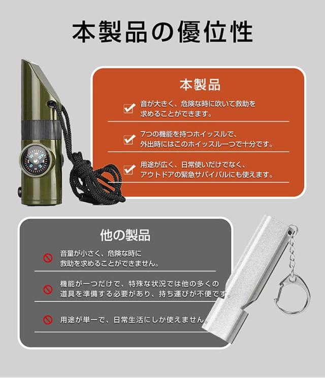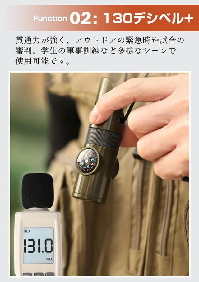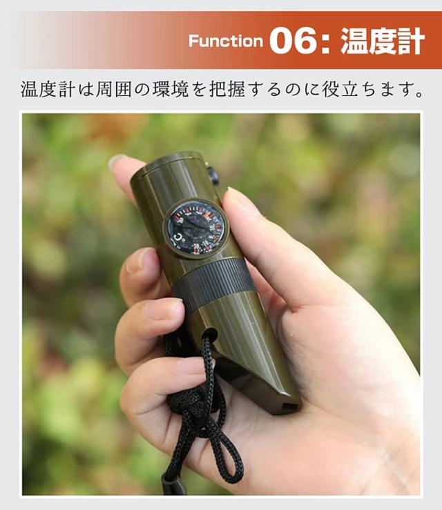 ホイッスル 笛 防災笛 コーチ笛 大音量 非常用 審判用 競技用 口笛 7-in1 多機能 笛/虫眼鏡/懐中電灯/コンパス/温度計/拡大鏡/密閉管 防犯 緊急 避難 害獣対策 危険防止 アウトドア サバイバル