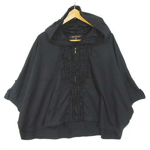 【中古】リフレッシング REFRESHING パーカー ポンチョ ドルマンスリーブ ジップアップ 綿 40 ブラック レース