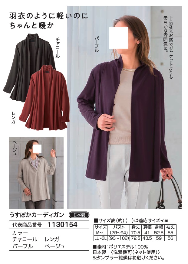 日本製 うすぽかカーディガン 全4色 カーディガン 長袖 軽い ショールタイプ レディース 婦人服 ミセス シニア 女性 大人 チャコールグレー レンガ パープル ベージュ 炭灰色 赤 紫 薄茶色 無地 シンプル 上品 きれいめ 軽量 シニアファッション 40代 50代 60代 70代 80代 90代 母の日 お母さん おばあちゃん 秋物 冬物 秋冬