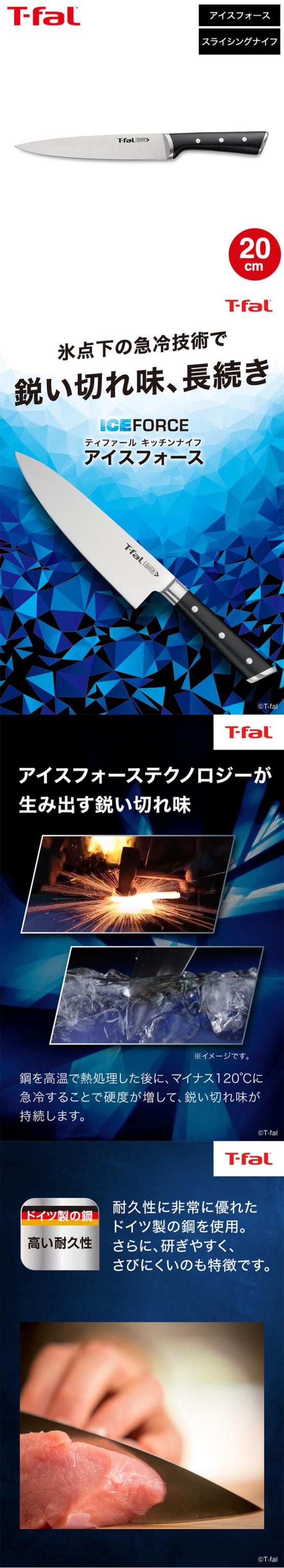 ティファール T-fal アイスフォース スライシングナイフ 20cm K24207 / 包丁 ナイフ キッチンナイフ 薄切り包丁 筋引包丁 刺し身 ハム スライシングナイフ 10年保証 食洗機対応 調理器具 キッチンツール キッチン用品 JGS
