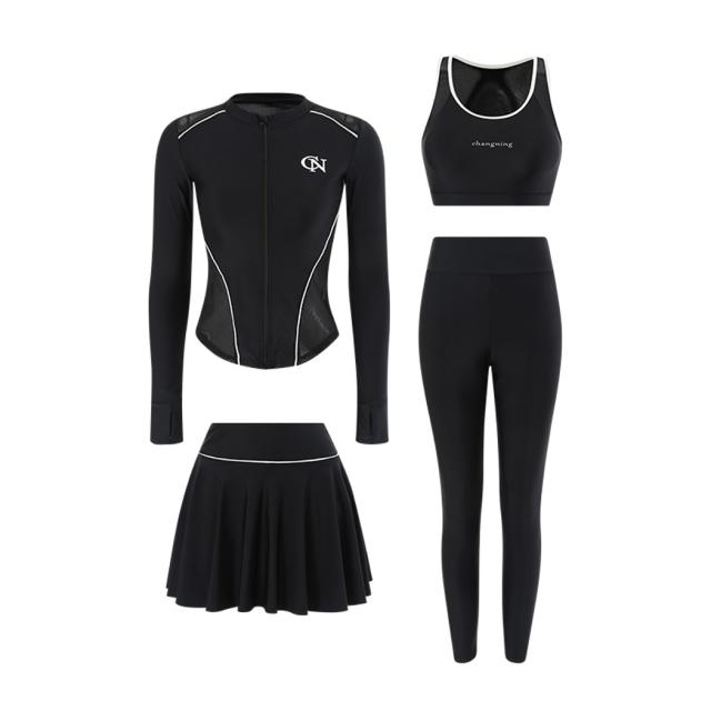 セット内容:4点セット(ブラ・トップス・パンツ一体型スカート・レギンス)