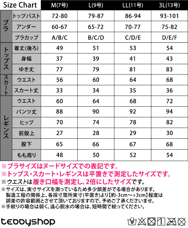 ※トップス・スカート・レギンスは平置きで測定したサイズです。