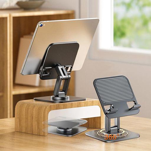 タブレットスタンド 卓上 安定性 3軸 IPAD スタンド 高さ角度調整可能 360°回転 隠し 折りたたみ 厚さ約2.8CM タブレットとスマホ 兼用 スマホホルダー 軽量?小型 滑り止め 放熱対策 持ち運…
