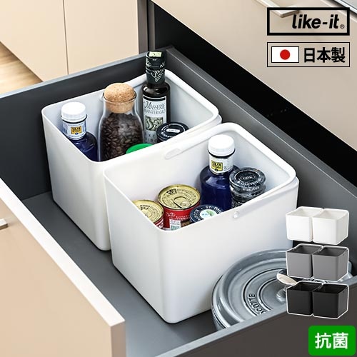 「ライクイット ハンドル付きストックケース ワイド 2P」は、飲料水や缶詰、防災用の備蓄品、ランチグッズといった小物の収納に便利なケースです。別売りの「フタ付きストックケース 米びつ」のインナーとして、白米とレトルト食品などの仕分けにも使えます。抗菌加工で安心・安全です。