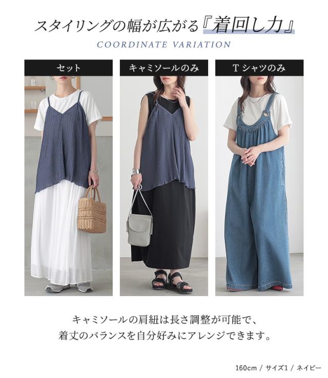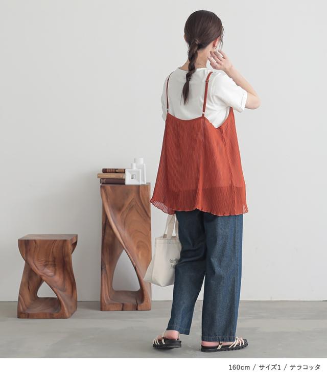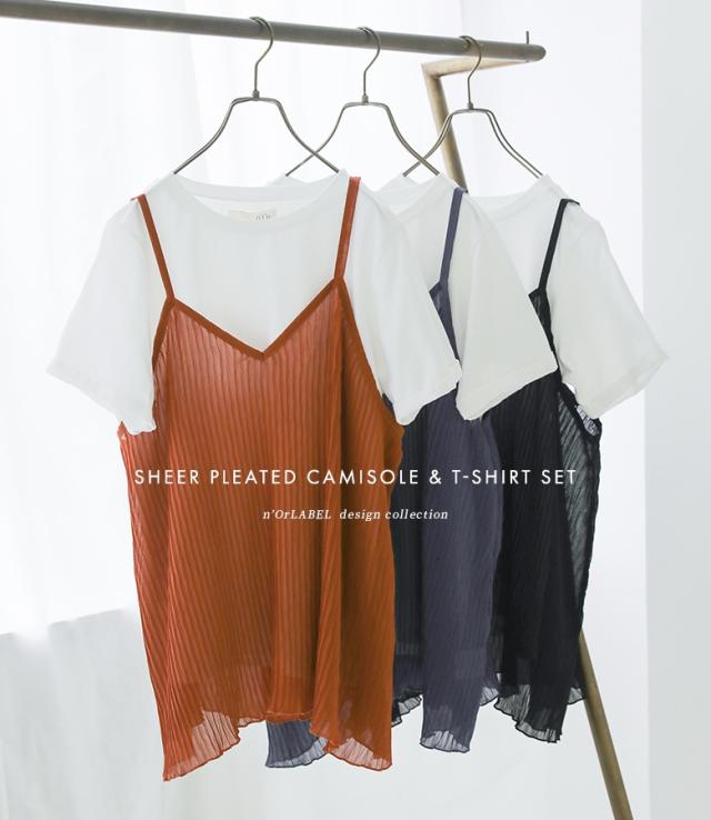 Tシャツ キャミソール 2点セット レディース トップス カットソー 半袖 綿100% シアー メロウ プリーツキャミ レイヤード 重ね着 春 夏 2点SET 【TP】 プルオーバー シアーキャミ クルーネック Vネック n'OrLABEL ノア—ルレーベル 大人女子 大人可愛い お洒落可愛い 大人カジュアル ベーシック ラフ オフィスカジュアル 上品 きれいめ ナチュラル ノースリーブ ショート丈 ミドル丈 チュニック丈 調節できる 調整可能 プリーツ 無地 コットン100% シースルー 透け感 おうちで洗える カジュアル シンプル モード キレカジ フェミニン ゆったり ゆる 楽ちん お尻が隠れる 二の腕カバー S M L LL 3L XL ぽっちゃり 体型カバー 大きいサイズ プラスサイズ 女子会 オフィス 通勤 通学 お買い物 お出掛け 旅行 リゾート レジャー おしゃれ お洒落 トレンド 流行 osharewalker オシャレウォーカー おしゃれうぉーかー オレンジ テラコッタ ネイビー 紺 ブラック 黒[ID]12to06m