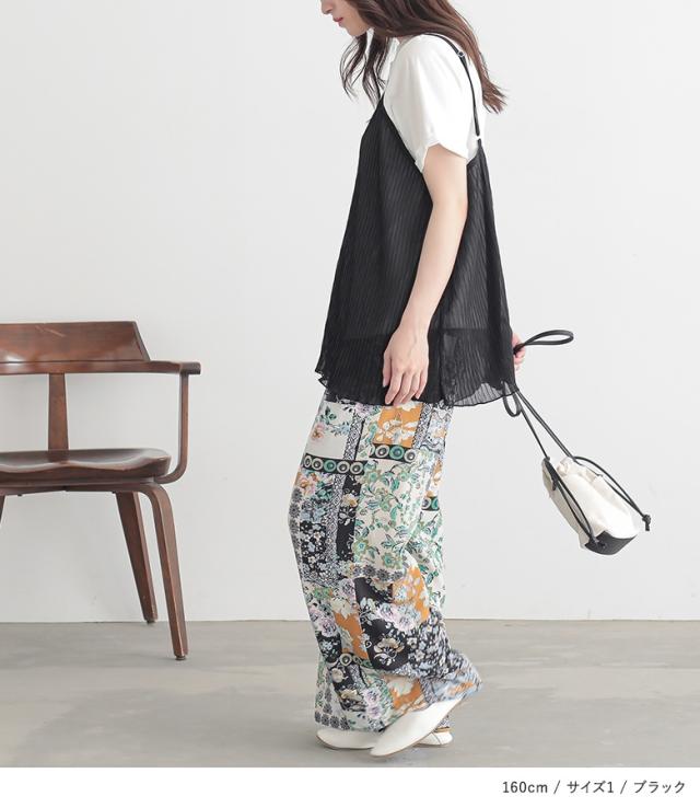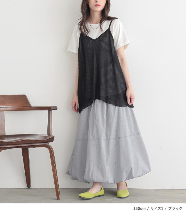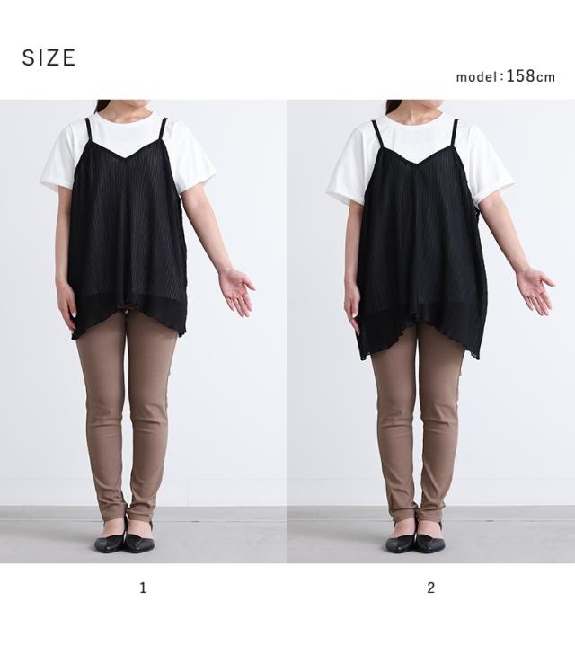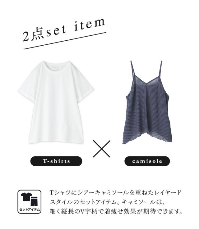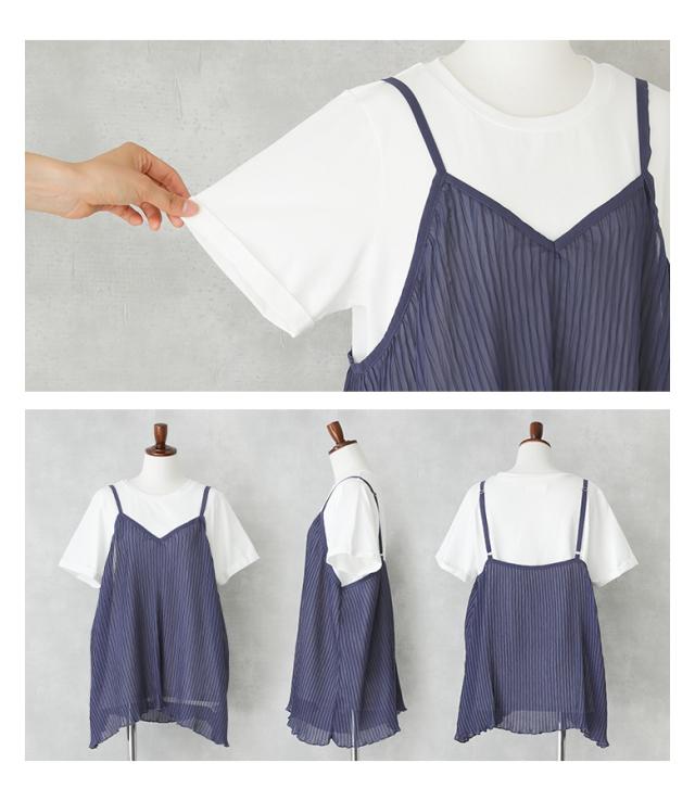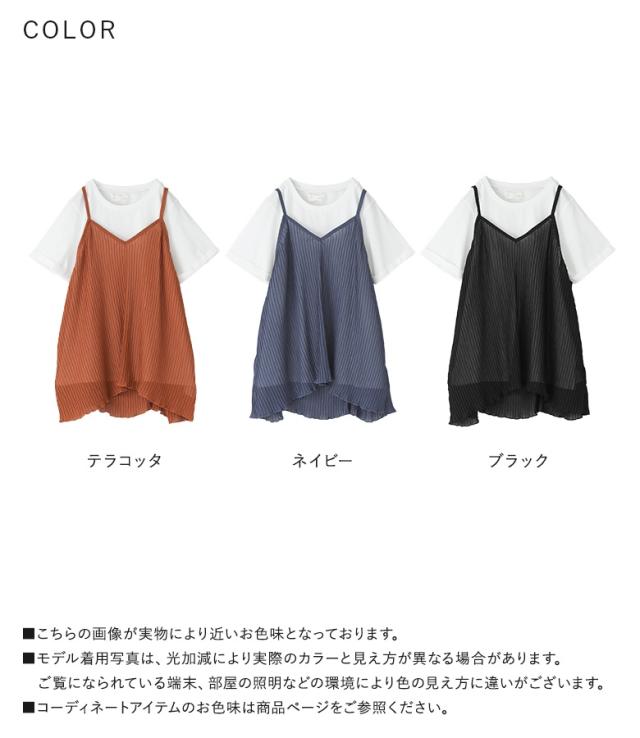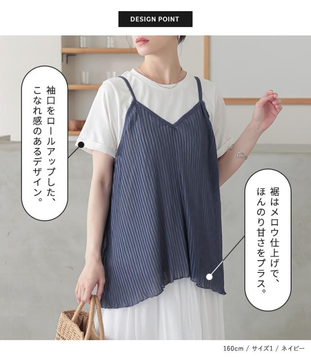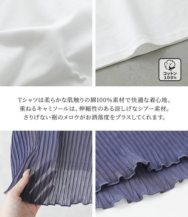 1,000円オフ4日0時迄 『シアープリーツキャミ×Tシャツ』※メール便可※【10】[Tシャツ キャミソール 2点セット レディース トップス カットソー 半袖 綿100% シアー メロウ プリーツキャミ レイヤード 重ね着 春 夏]