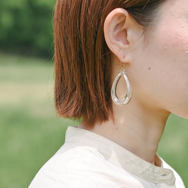 雨が降る前の香り。風にゆられ、空から降りそそぐ雫のような潤いを感じさせてくれるピアス。耳元でやさしく輝き、軽やかな気品を演出します。