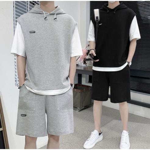 セットアップ メンズ 夏 上下 ジャージ上下 上下セット ノパーカー スウェット タンクトップ ハーフパンツ 無地 フード付き