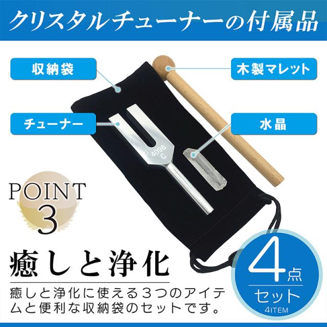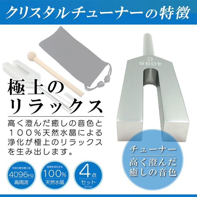 クリスタルチューナー 4096HZ 音叉 本物 浄化 癒やし 水晶 天然石 パワーストーン マレット 4点セット