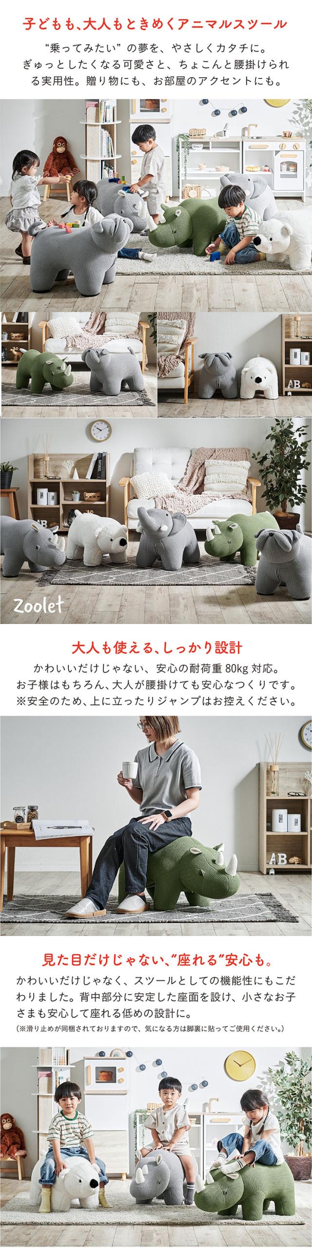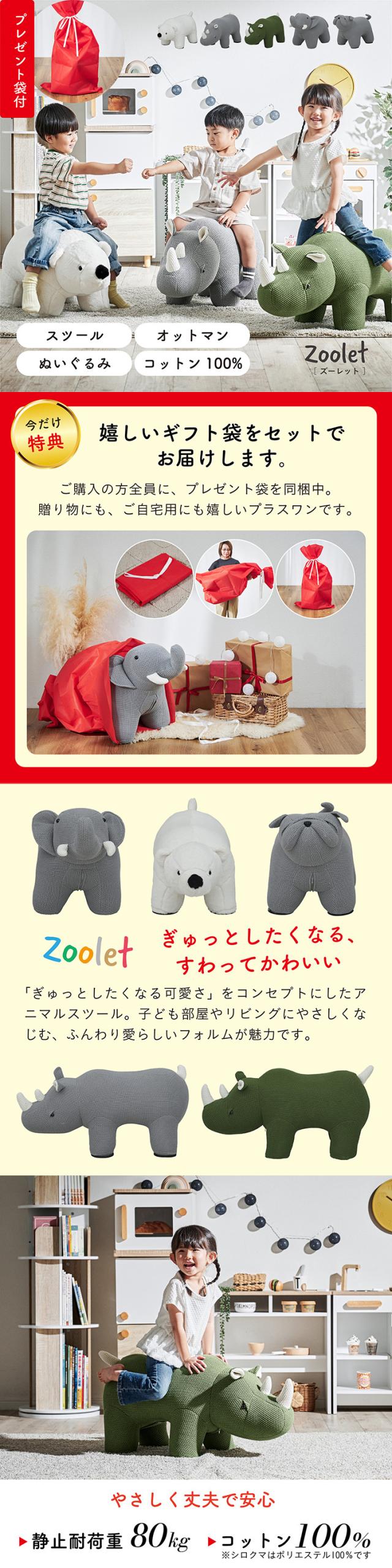 【プレゼント袋付!】アニマルスツール 子供用 椅子 スツール 動物 かわいい チェア キッズチェア オットマン おしゃれ コンパクト 玄関 リビング 子供部屋 ギフト対応 耐荷重80kg ぬいぐるみ Zoolet(ズーレット) 全5種類