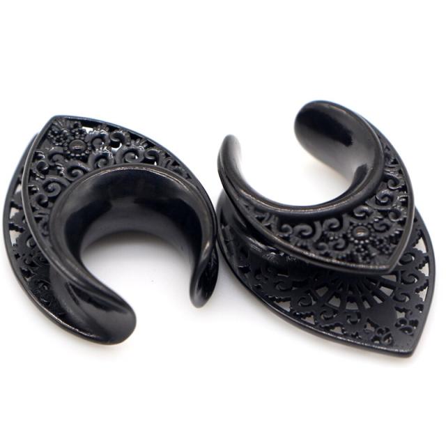 [0G 00G 12mm 14mm 16mm おもしろい ボディピアス] ブラックカッサンドラティアドロップフレア ステンレス ボディーピアス 1個販売 半月方 三日月型 メンズ レディース 男子 女の子 黒色 個性的 ホールピアス 0ゲージ 00ゲージ 12ミリ 12.0mm 14ミリ 14.0mm 16ミリ 16.0mm