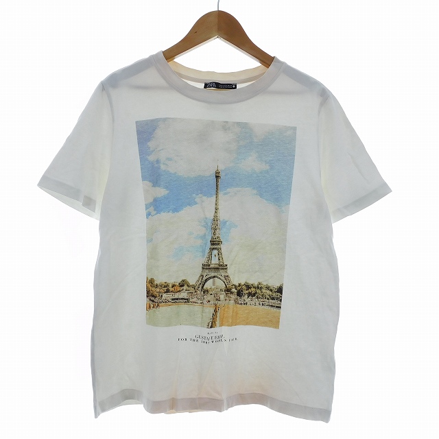 【中古】ザラ ZARA Tシャツ カットソー 半袖 クルーネック プリント S 白 ホワイト トップス レディース
