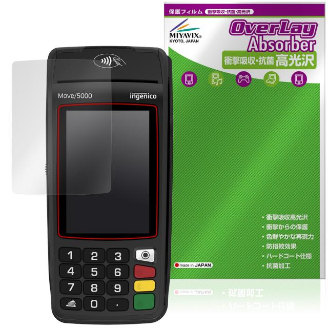 ingenico Move/5000 保護 フィルム OverLay Absorber 高光沢 for ポータブル決済端末 衝撃吸収 高光沢 ハードコート 抗菌