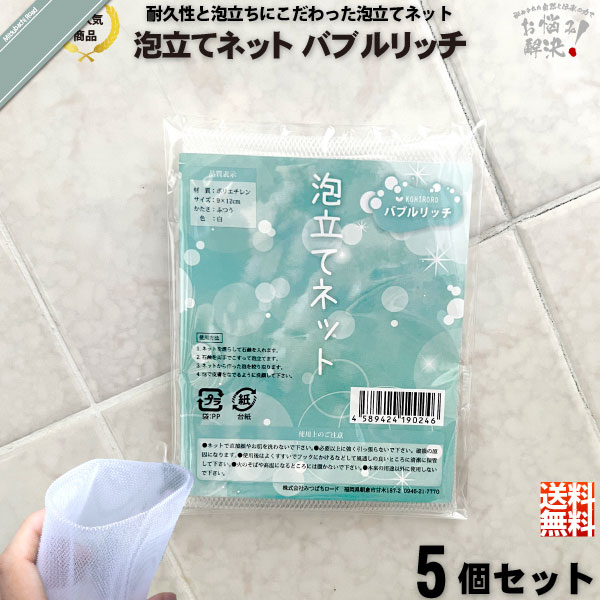 【ポイント20倍】【お手軽 / 5個セット】泡立てネット バブルリッチ(90×120mm) 泡だて 泡たて あわだて あわたて モコモコの泡々 送料込 【送料無料】【1000円ポッキリ】【1000円ぽっきり】