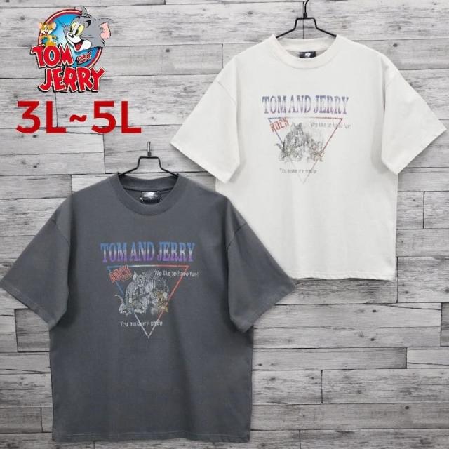 【送料無料】大きいサイズ メンズ トムとジェリー TOM&JERRY トムジェリ 半袖 Tシャツ ティーシャツ 半袖Tシャツ プリント キャラクター グッズ レディース ユニセックス オーバーサイズ ワイドシルエット オフホワイト アイボリー チャコール インクブラック 3L 4L 5L