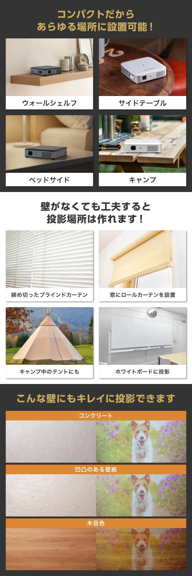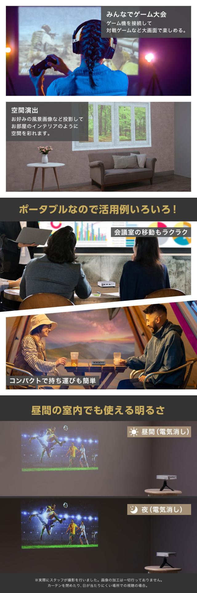 ★ このプロジェクターなら、10インチの省スペース利用も、100インチのダイナミック体験もこれ1台。