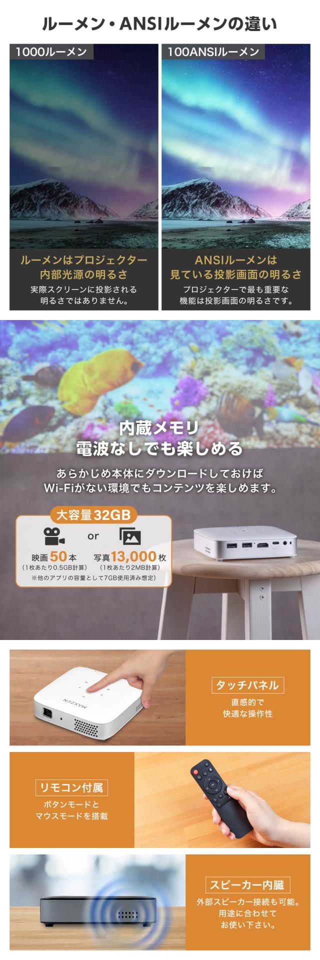 * 最大輝度(ANSIルーメン): 100ANSI/lm