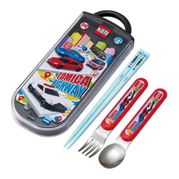 スケーター TACC2AG トミカ 25 [子供用 お弁当 トリオセット (箸 スプーン フォーク 抗菌 加工 開けやすいスライド式)]