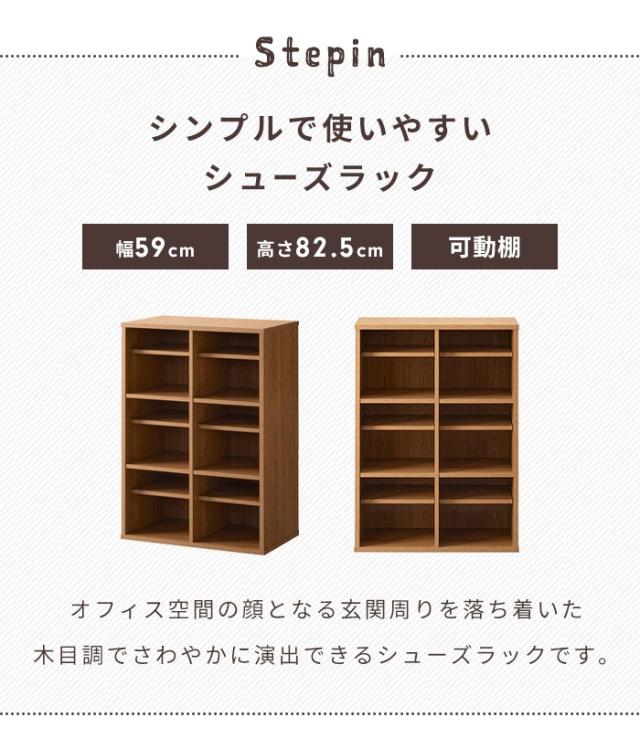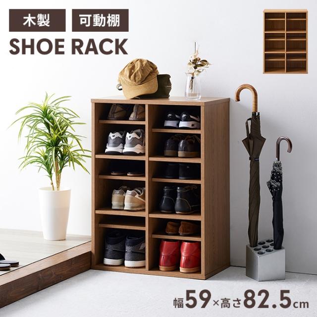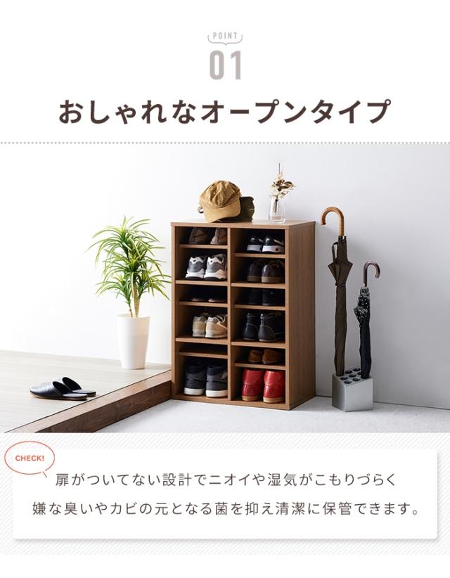 | 落ち着いた木目調のオープンシューズラック。 扉がついてないオープンタイプで匂いや湿気がこもりづらく、いやなニオイやカビの元となる菌の抑制も抑え清潔に保管できます。 3.2cm間隔6段階で高さを調節できるので、様々な靴やスリッパが収納でき、最大12足収納可能。 |