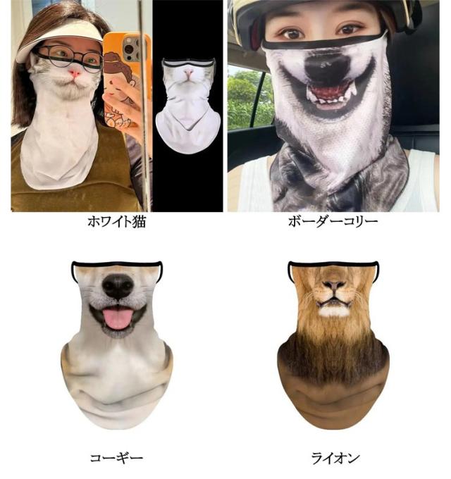 フェイス マスク UVカット おもしろアニマルフェイスマスク UVフェイスガード 夏用 伸縮 接触冷感 おもしろアニマルフェイスマスク マスク 通気性 ネックガード 動物柄 UVカット 日焼け防止 2枚 フェイスカバー マスク 3D プリント ネックカバー 多機能 日よけ