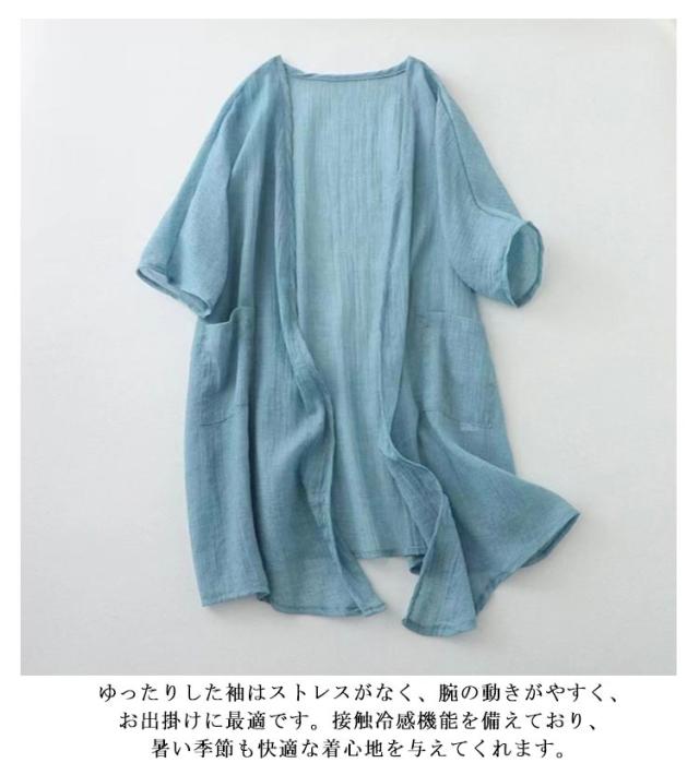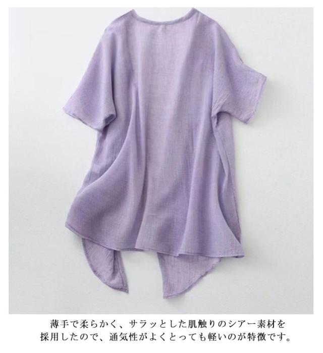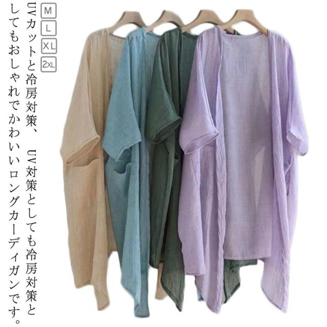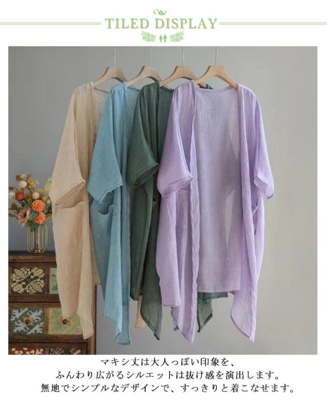 シアーカーディガン 五分袖 夏用 冷感 薄手 uv 大きめ UVカット レディース ロングカーディガン 薄手カーディガン ひんやり ロング 羽織 半袖カーディガン 二の腕カバー 日焼け対策 透け感 綿麻風 羽織り パープル ブルー ベージュ