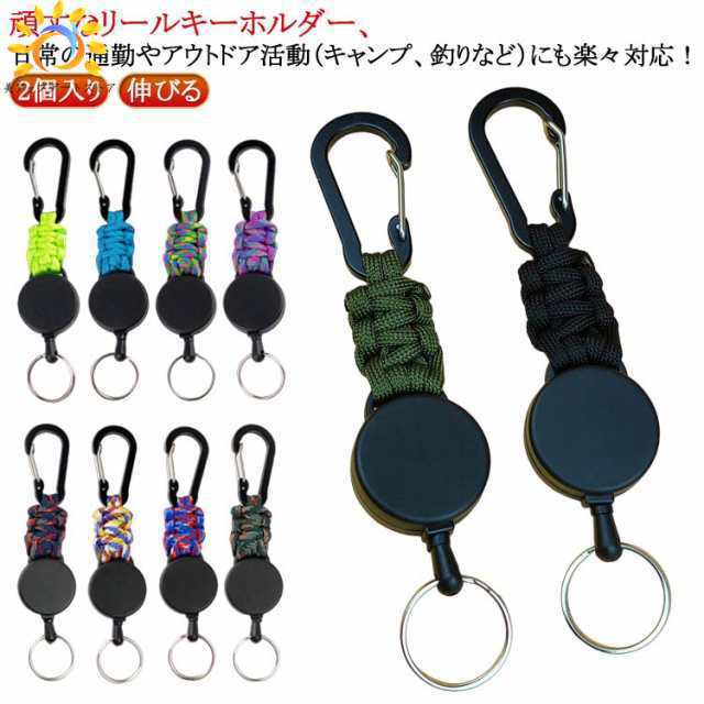 リールキーホルダー カナビラ付 2個セット 強力 キーリール 金属ワイヤー 最長65cm 伸びるキーホルダー キーチェーン 伸びる 丈夫 多機能 超軽量 紛失防止 取り出しやすい 便利 吊り下げ お出かけ キャンプ ハイキング 釣り 登山 アウトドア用