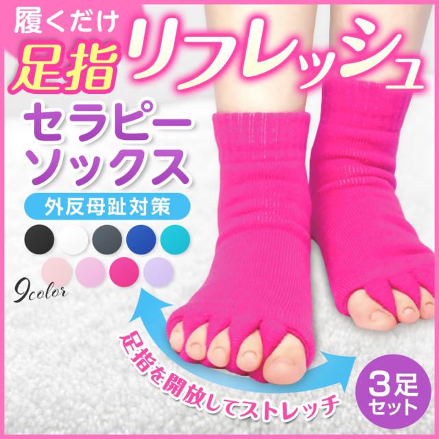 セラピーソックス 外反母趾 靴下 足指 広げる 就寝用 5本指 スリーピング ルームソックス 浮腫 血行促進 3足セット