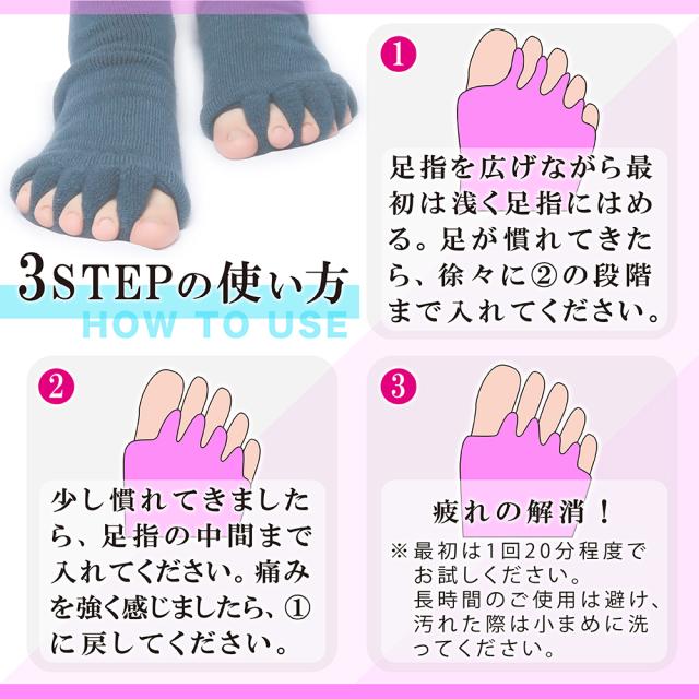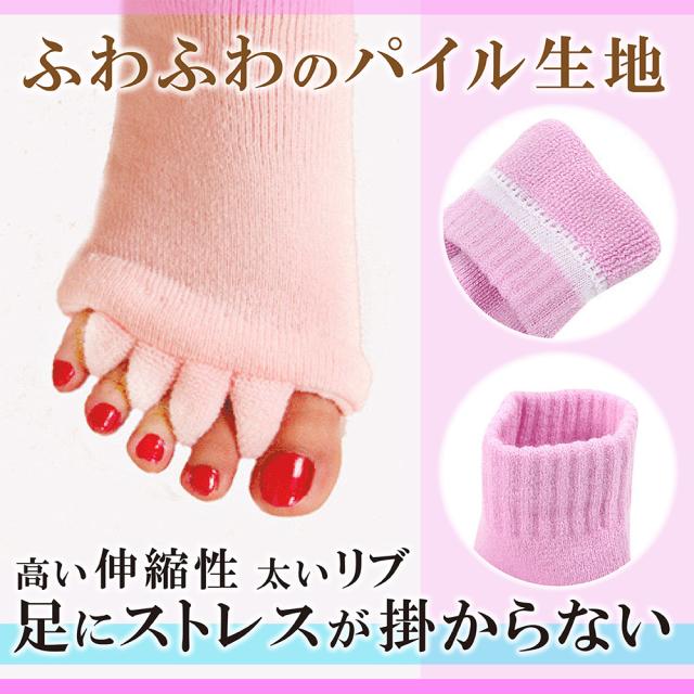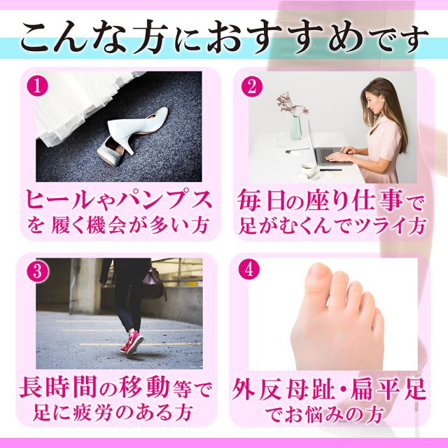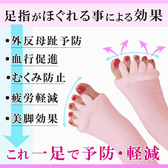 外反母趾予防、血行促進、むくみ防止、疲労軽減、美脚効果など趾がほぐれる事により 様々な効果を期待できます。