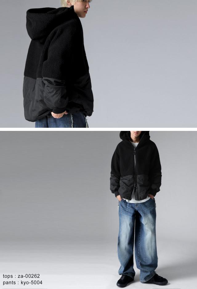 【予約:1月下旬納期】異素材 切替 ボアアウター メンズ アウター コート 送料無料・再入荷 メール便不可 秋新作