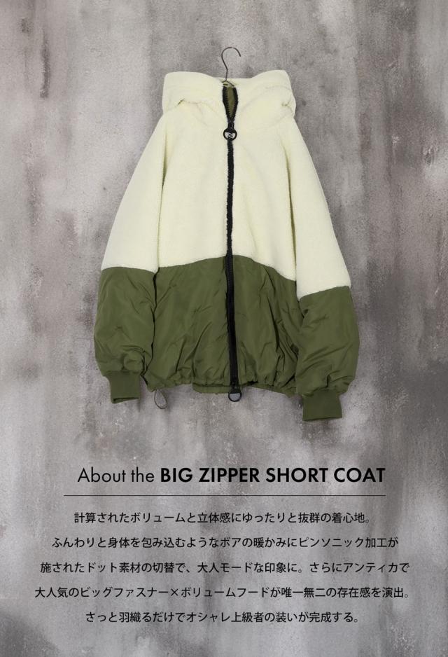 ビッグジッパー(ファスナー)や両サイドのポケットなど、デザイン性と実用性を兼ね備えた一着です。