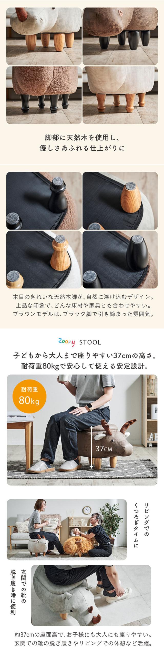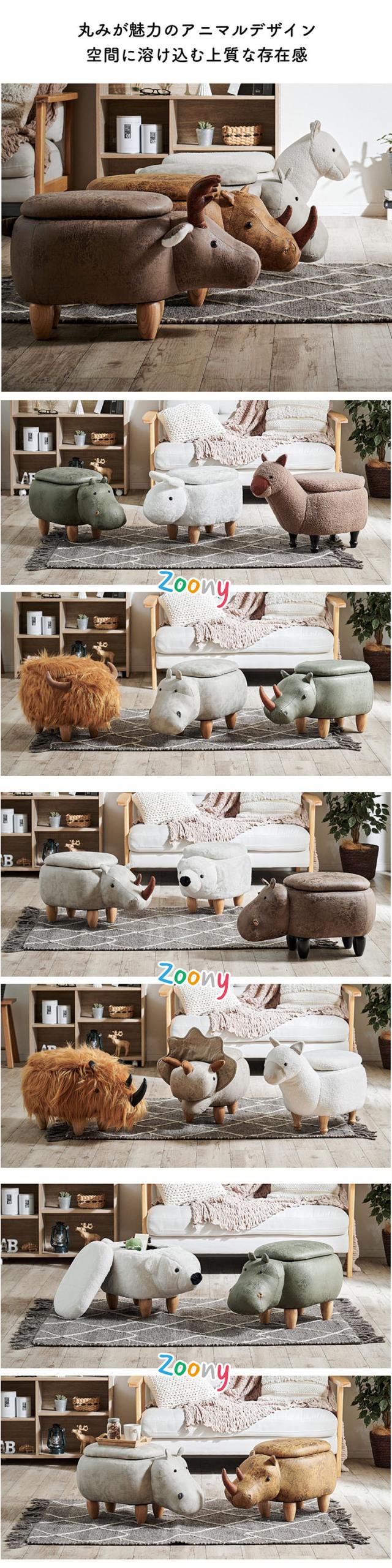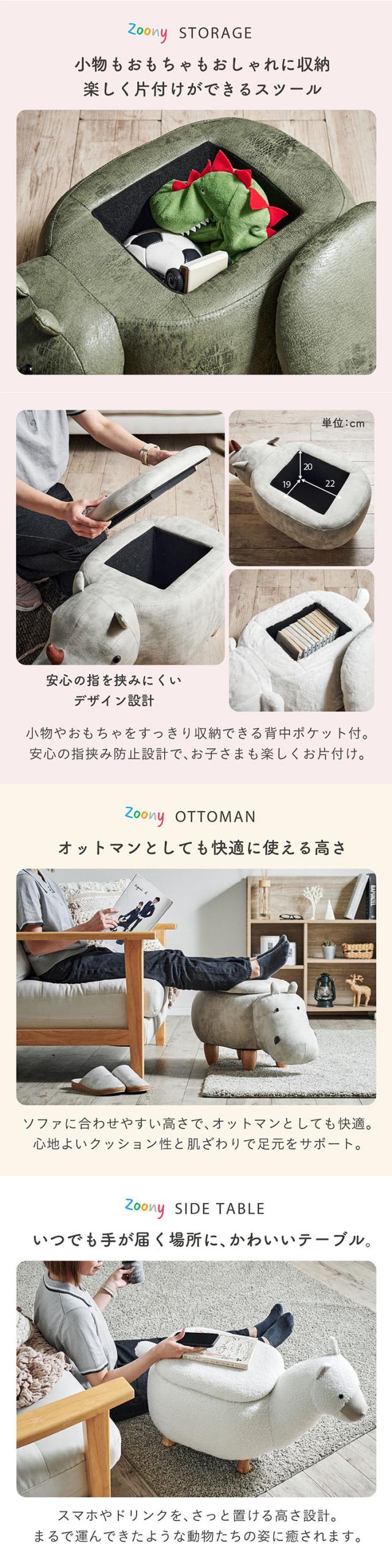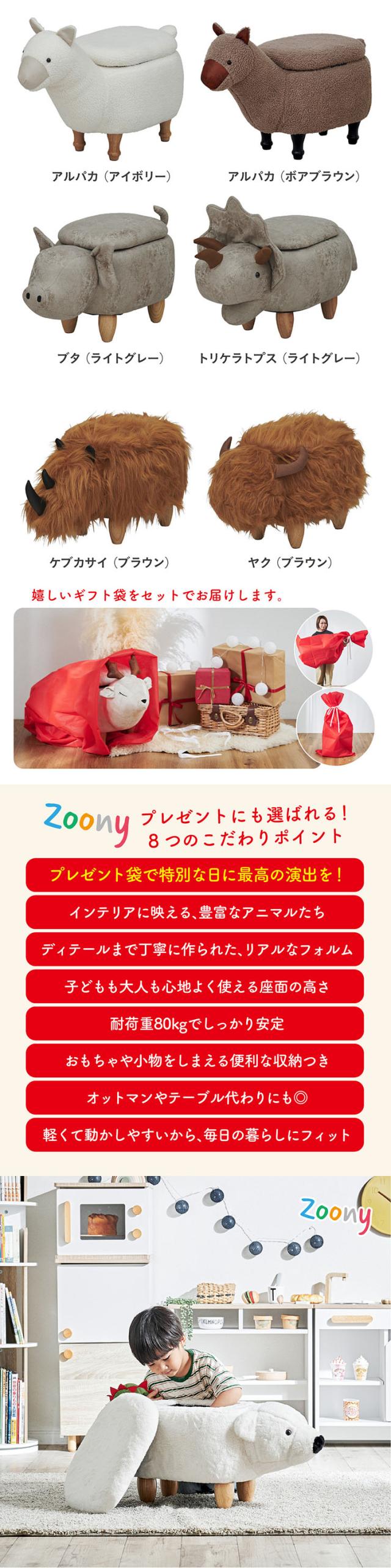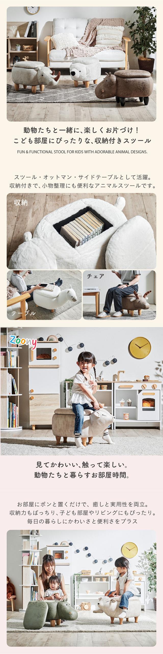 【プレゼント袋付!】アニマルスツール 子供用 椅子 スツール 動物 Zoony(ズーニー) かわいい 収納付き チェア キッズチェア オットマン おしゃれ コンパクト 玄関 リビング 子供部屋 ギフト対応 耐荷重80kg ぬいぐるみ 全16種類