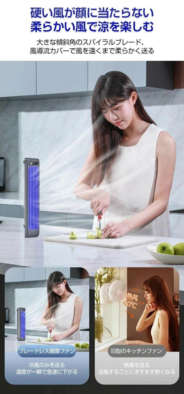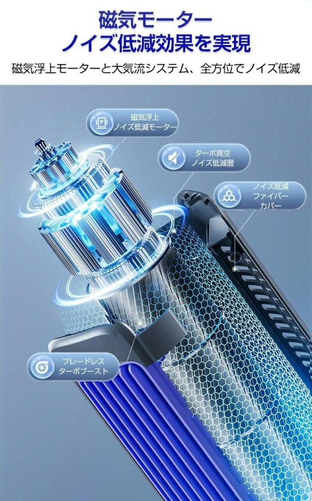 【羽根なしの静音設計】羽根なしを採用し、効率的に均一で快適な風を送ります。静音設計なので、動作音が気にならず、快適な環境を提供します。特に就寝時や静かに過ごしたい時に最適です。