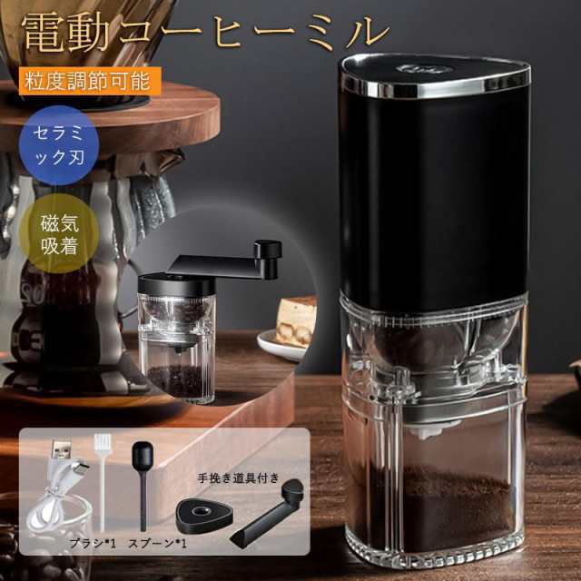 電動コーヒーミル 臼式 小型 珈琲ミル コーヒーグラインダー 電動ミル 分離式 水洗い可 Type-C充電 自動停止 磁気吸着 コーヒー豆 お茶ミル