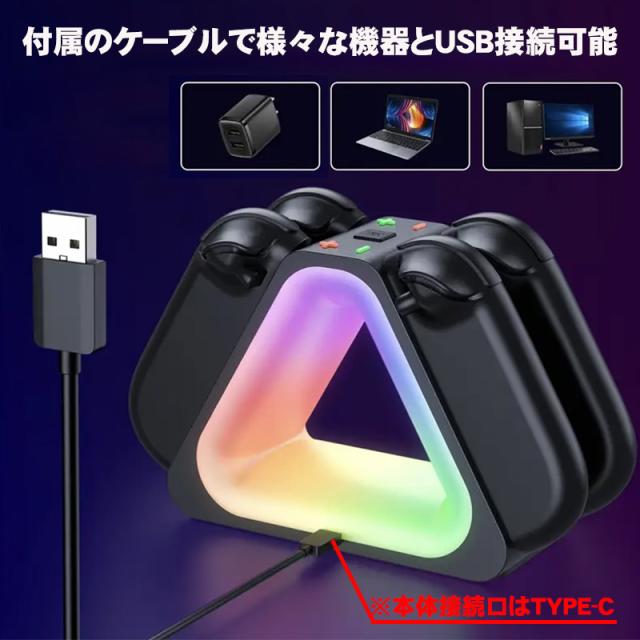 | Nintendo Switch 2(ニンテンドー スイッチ 2) Joy-Con 2(ジョイコン 2)本体の左右2個の2台分(合計4個)を同時に充電できるドック トライアングル(三角形)デザインRGBライト付きで7種のライトでとてもおしゃれ LEDランプで充電状況が確認可能 充電中は、オレンジ色に点灯 完全に充電されているとき、またはスタンバイモードでは、グリーン色になります。 +やーのマークがあり子供でも分かりやすくなっています。 置くだけでピタッと接続でき、Joy-Con 2(ジョイコン 2)の充電ができます。 |