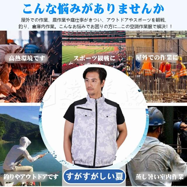 \2年保証☆5段階風量☆風量MAX/MIDIAN 空調ウェア 空調作業服 バッテリー ファンセット ベスト 空調ウェア フルセット 冷却服 空調作業着 空調扇風服 ワークウェア 20000mAh 最大36H稼動可能 大風量 薄型 夏 熱中症対策 UVカット 空調ベスト