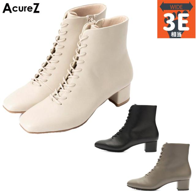 3E相当 幅広 ワイド アキュアーズ レディース ブーツ 靴 シューズ ショート おしゃれ レースアップ スタイリッシュ 生活防水 消臭 耐久性 晴雨兼用 ホワイト 白 ブラック 黒 カーキ 送料無料 AcureZ AO10251