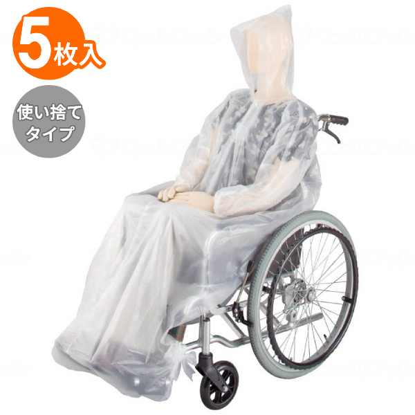 車椅子 雨ガッパ 使い捨て 生き活き車いす用レインコート 使い切りタイプ KR0900-TB クリア 5枚入 宇都宮製作 雨合羽 レインポンチョ 介護用品