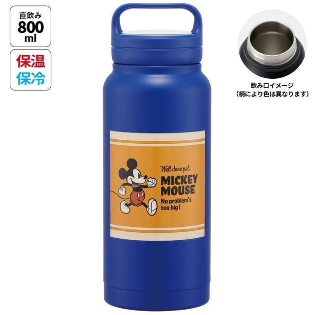 スケーター ディズニー ミッキーマウス キッズ 女性 ステンレス水筒 保温・保冷 直飲み 800ml 広口&真空二重構造 持ち手ハンドル付き Skater STSC8