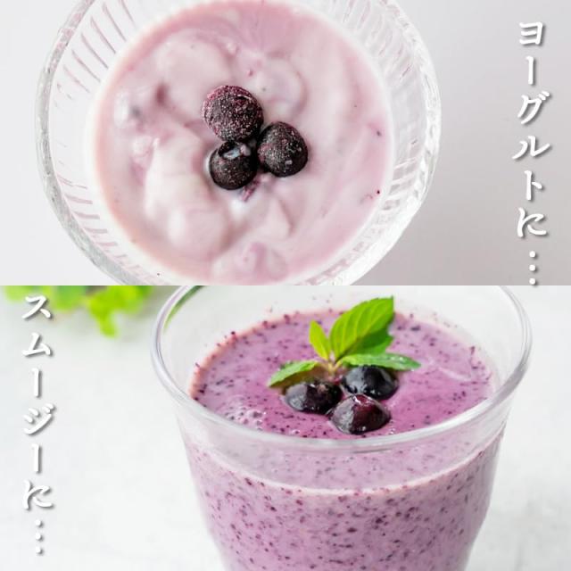 訳あり品の使用用途として一度冷凍して頂ければ通常の冷凍ブルーベリーと同じようにご使用いただけます。