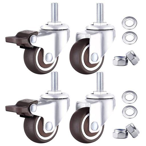 ネジ式 キャスター 4個セット ブレーキ付き M8ネジ 360度回転 耐荷重 80KG 360度回転 ゴム車輪 1.5インチ キャスター 簡単設置 DIY 車輪38MM(自在車2個+ブレーキ付2個)