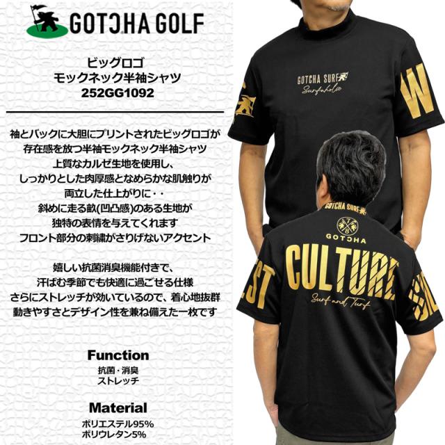 ガッチャゴルフ ビッグロゴ モックネック 半袖シャツ 抗菌消臭 ストレッチ 252GG1092 GOTCHA GOLF 【新品】UAAR メンズ レディース ユニセックス トップス ゴルフウェア JUL2