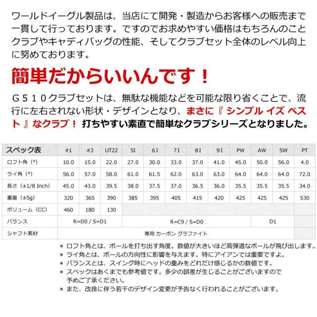 アウトレット品(わけあり 展示 撮影) WE G510 メンズゴルフクラブセット CBX001 ブラック キャディーバッグ付き 左利き用 フレックスS 展示品