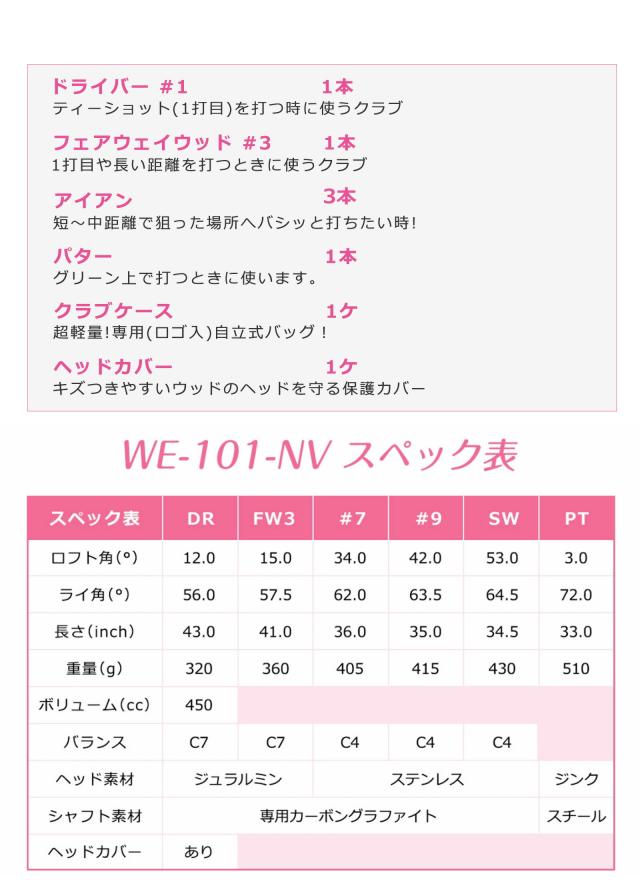アウトレット 初心者向け WE 101 レディース ゴルフクラブセット ホワイト 右利き用 TB-CCクラブケース ブラック 女性用 わけあり