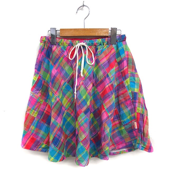 【中古】ビームスボーイ BEAMS BOY フレア スカート ひざ丈 チェック コットン 綿 ドローストリング ピンク /NT6