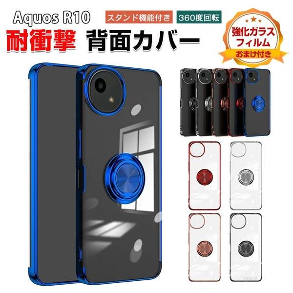 SHARP AQUOS R10 ケース 耐衝撃 カバー タフで頑丈 TPU素材 スタンド機能付き 指紋防止 手触り抜群 落下防止 おしゃれ カッコいい 便利 実用 人気 衝撃に強い 背面カバー 金属 シャープ アクオス R10 クリアケース 保護ケース 強化ガラスフィルム おまけ付き