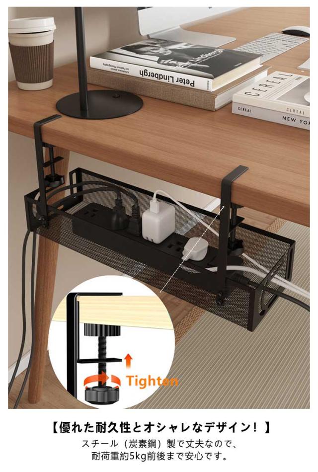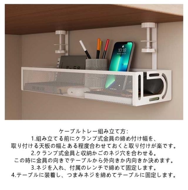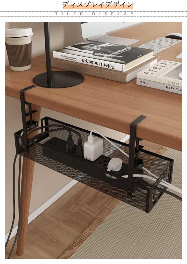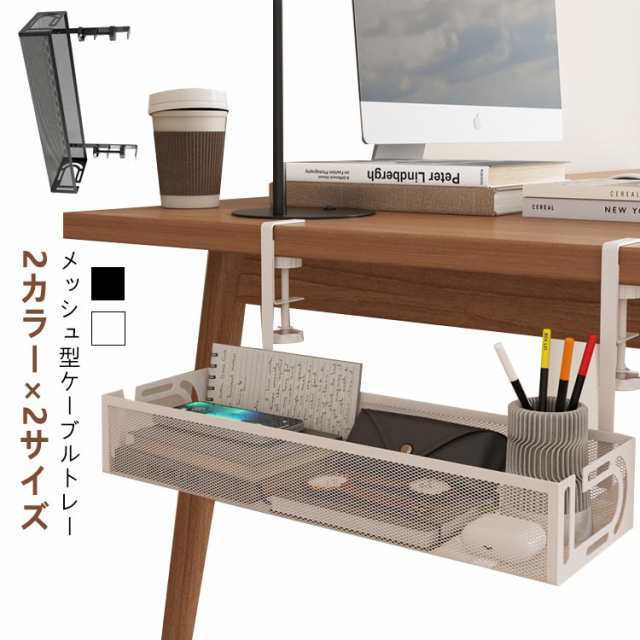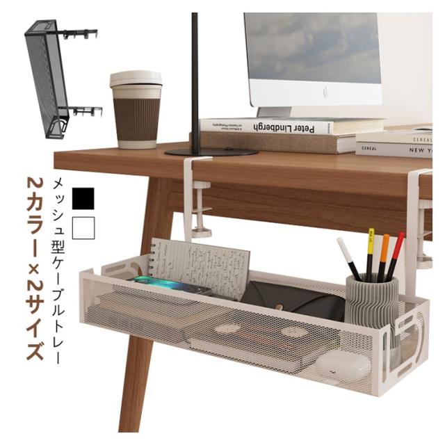 黒 クランプ式 白 ケーブルトレー メッシュ型 ケーブルオーガナイザー 配線 ケーブル コード 机の下 延長コード 収納 デスク パソコン pc 配線隠し ケーブルトレイ ケーブルボックス コンセントボックス デスク下 収納ボックス ホワイト