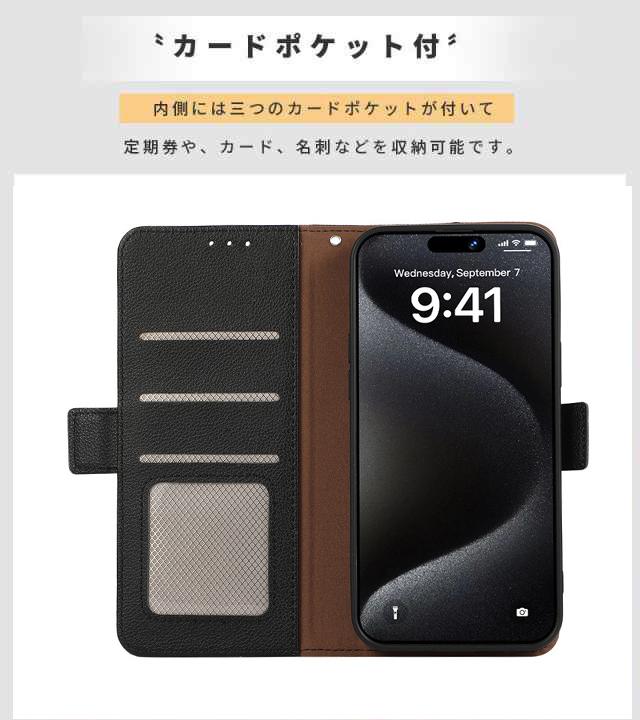 内面にはカードポケットと、サイドには収納しやすい便利な幅広ポケット付き。