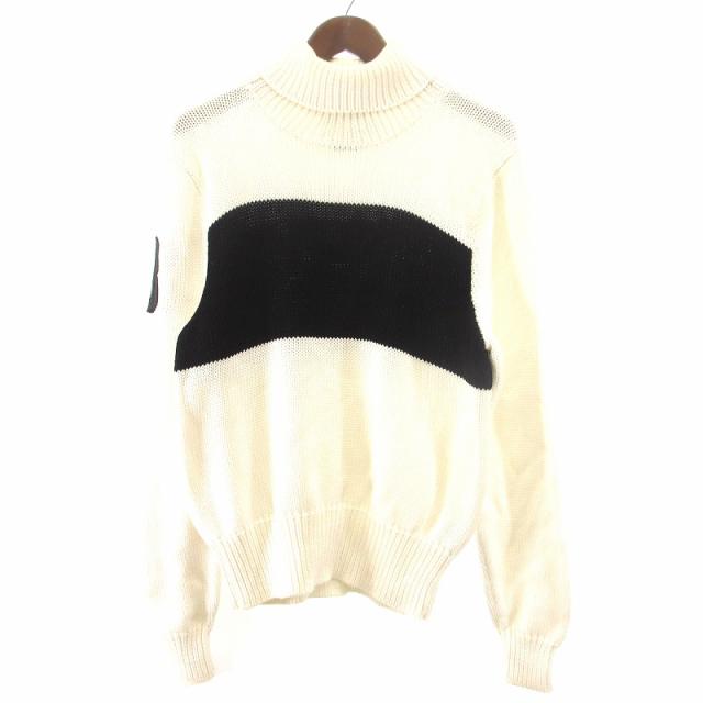 【中古】ポロ ラルフローレン POLO RALPH LAUREN ニット セーター タートルネック 長袖 ワッペン コットン 白 黒