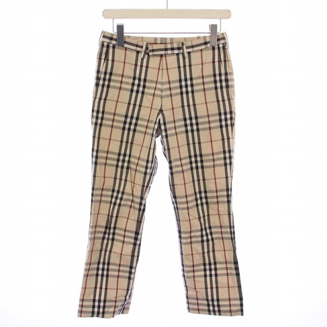 【中古】バーバリーブルーレーベル テーパードパンツ スラックス ジップフライ クロップド丈 ノバチェック ベージュ